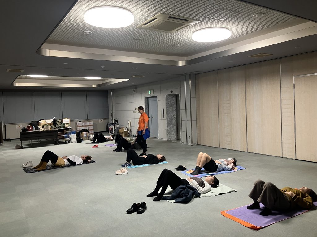20代〜40代のお若い方ばかりだったので、ウォーミングアップを兼ね、10分程度の簡単エアロで体を温めました。