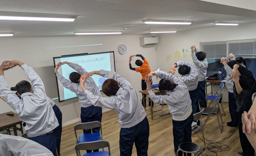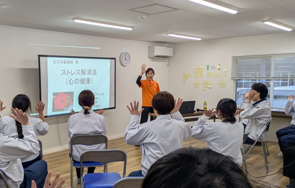 セルフケアーの方法をお伝えし、呼吸を意識したストレッチの実習を最後実践いただきました。
