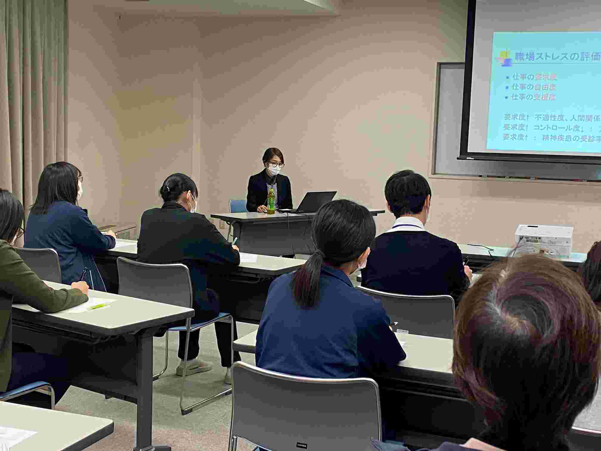 セルフのメンタルヘルスについて、ストレスの気づき、コントロール、コミュニケーションについてお話しさせていただき、ワークや呼吸法を実践いただきました。